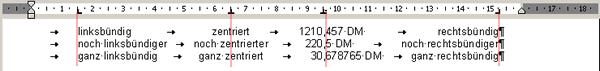 steht, ist die die Ausrichtung des nachfolgend gesetzten Tabulators.